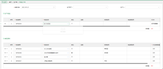 在新建生產(chǎn)單時,選擇成品與原料可通過選擇生產(chǎn)BOM來快捷選擇。